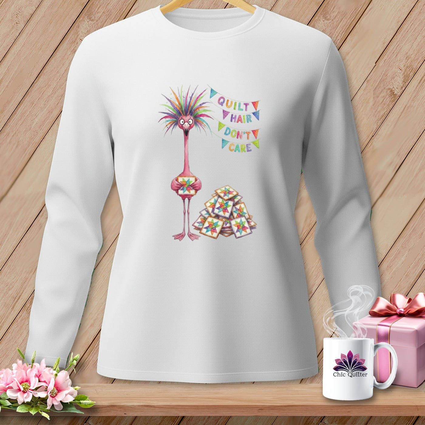 Starla Flamingle doesn’t just finish blocks — she debuts them. With a rainbow crown of stitch-fueled brilliance and a stack of star blocks ready for admiration, she’s the flamingo who absolutely signs her work in confidence. Perfect for quilters who press their seams crisp, stack their finishes high, and proudly declare, “Yes, I made that.” 🦩✨